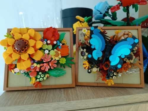 A buildable, blooming picture frame. Over 700 pieces complete a 3D picture frame to display a bouquet that never wilts.